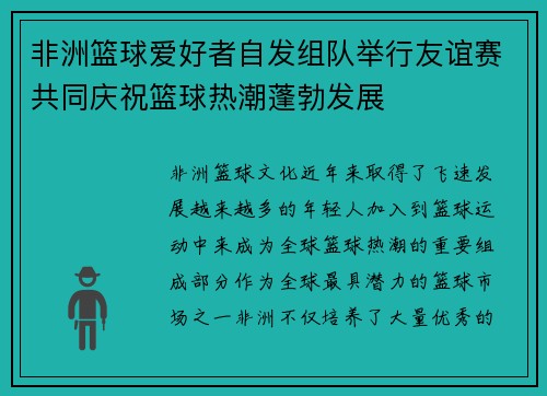 熊猫体育非洲篮球爱好者自发组织的友谊赛不仅仅是当前热潮的体现,它还为非洲篮球的未来发展注入了新的活力。这些自发的赛事不仅培养了大量年轻球员,还推动了篮球文化在社区中的普及。