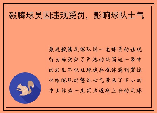 最近,毅腾足球队因一名球员的违规行为而受到了严格的处罚,这一事件的发生不仅让球迷和媒体感到震惊,也给球队的整体士气带来了不小的冲击。作为一支实力逐渐上升的足球队,毅腾在本赛季展现出了不俗的竞技状态和顽强的拼搏精神,这起违规事件却让所有的努力瞬间被蒙上了阴影。